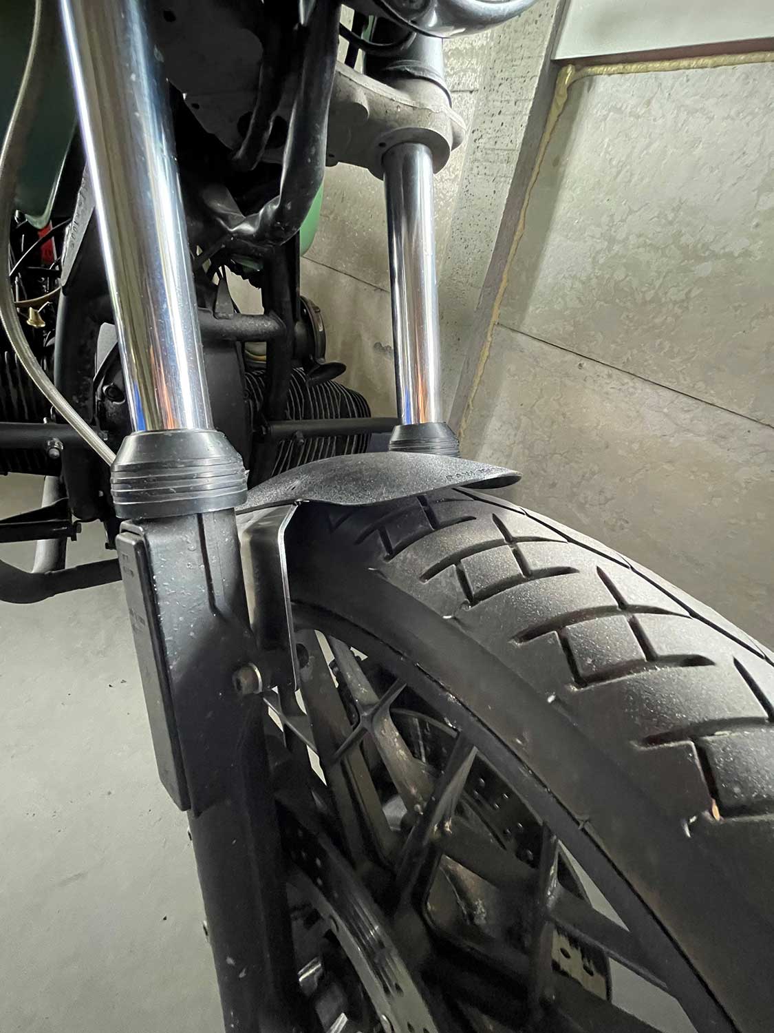 These beautifully finished front fenders are specially made for the BMW R60, R75, R80, R90 and R100 1976-1984 with a front disc brake. The brushed aluminium fenders are crafted with great pride. The brackets are made of 3mm stainless steel, and both the fender and brackets can be painted in color if desired. Because the brackets have a slotted hole, the fender is adjustable in height.