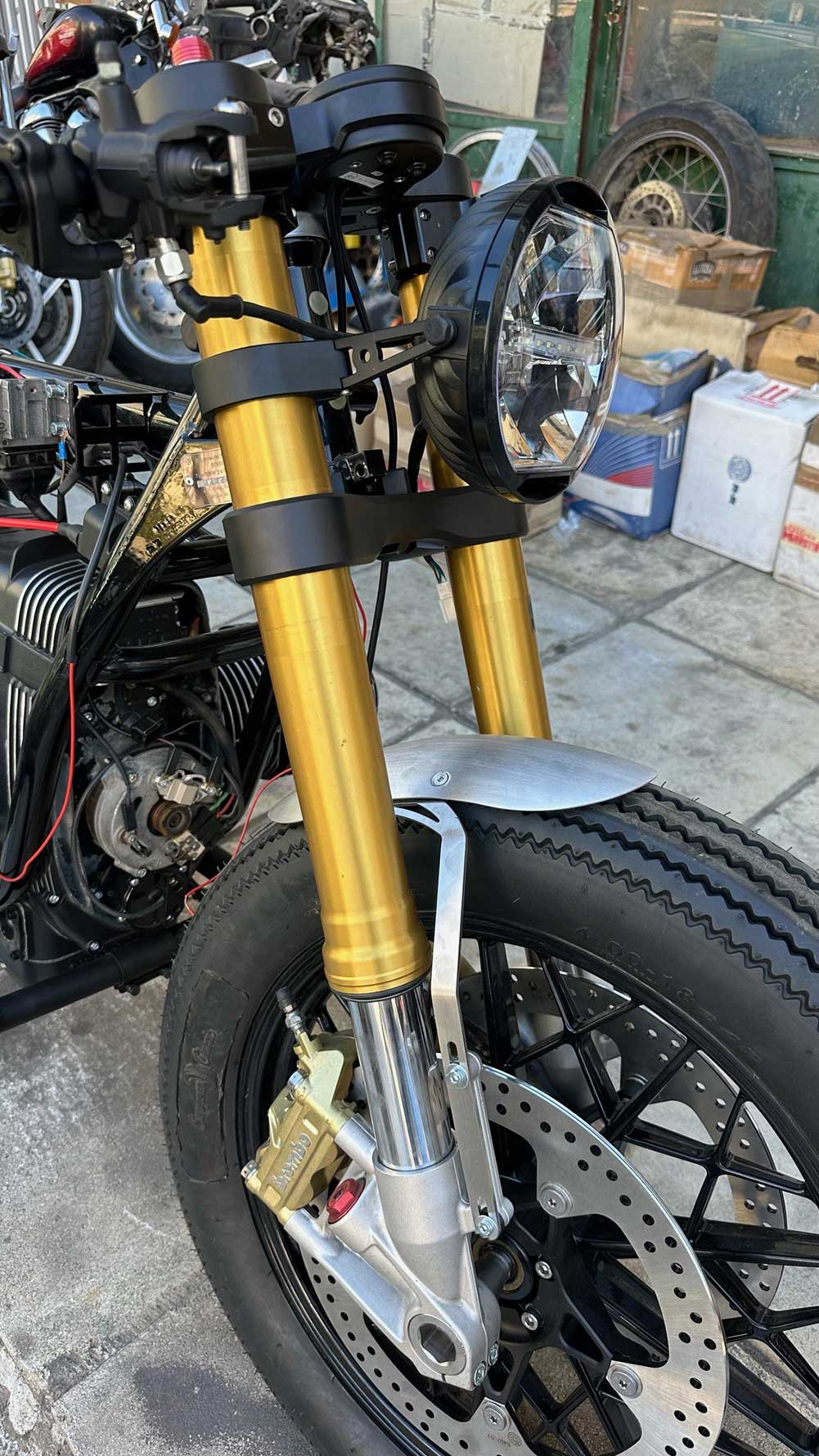 These beautifully finished front fenders are specially made for the Front fender BMW S1000 / R nine T. The black fenders are very neat due to the textured finish. The brackets are made of 3mm stainless steel, and can be sprayed in color if desired. Because the brackets have a slotted hole, the fender is adjustable in height.