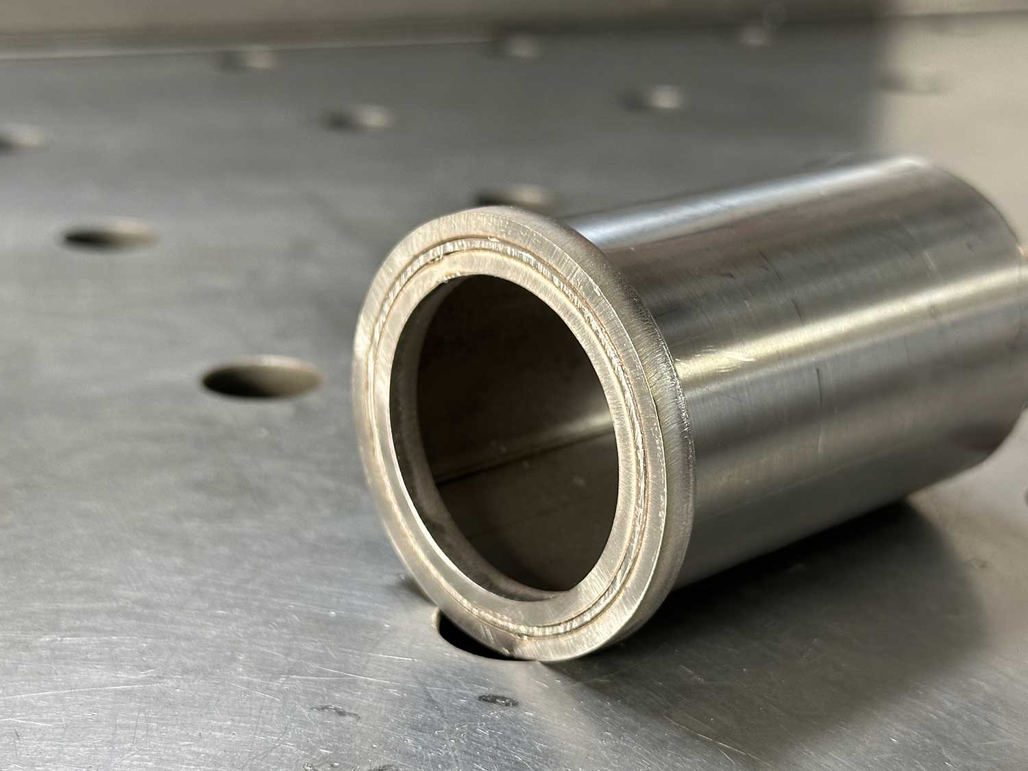 To install the flanges, the tube must have a slight chamfer. Following this, you can press the flanges onto the tube using a vice or gently tapping them with a hammer. Once they are fully seated, proceed to weld them onto the tube, creating an ideal sealing surface for your exhaust seal. Choose the appropriate size for your specific tube diameter!