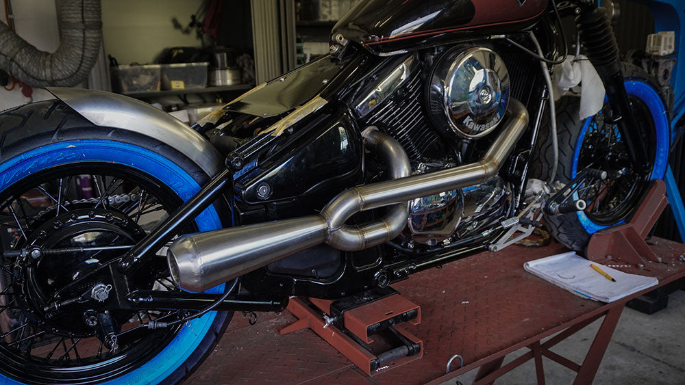 Raw Metal Racers makes custom full stainless steel exhaust systems for every bike and also produces exhausts, like this great-looking Kawasaki VN800 exhaust.