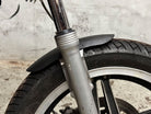 These beautifully finished front fenders are specially made for the Honda CX500. The brushed aluminium fenders are crafted with great pride. The brackets are made of 3mm stainless steel, and both the fender and brackets can be painted in color if desired. Because the brackets have a slotted hole, the fender is adjustable in height.