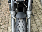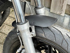 These beautifully finished front fenders are specially made for the Honda CB750F2 SevenFifty 1992-2001. The black fenders are very neat due to the textured finish. The brackets are made of 3mm stainless steel, and can be sprayed in color if desired. Because the brackets have a slotted hole, the fender is adjustable in height.
