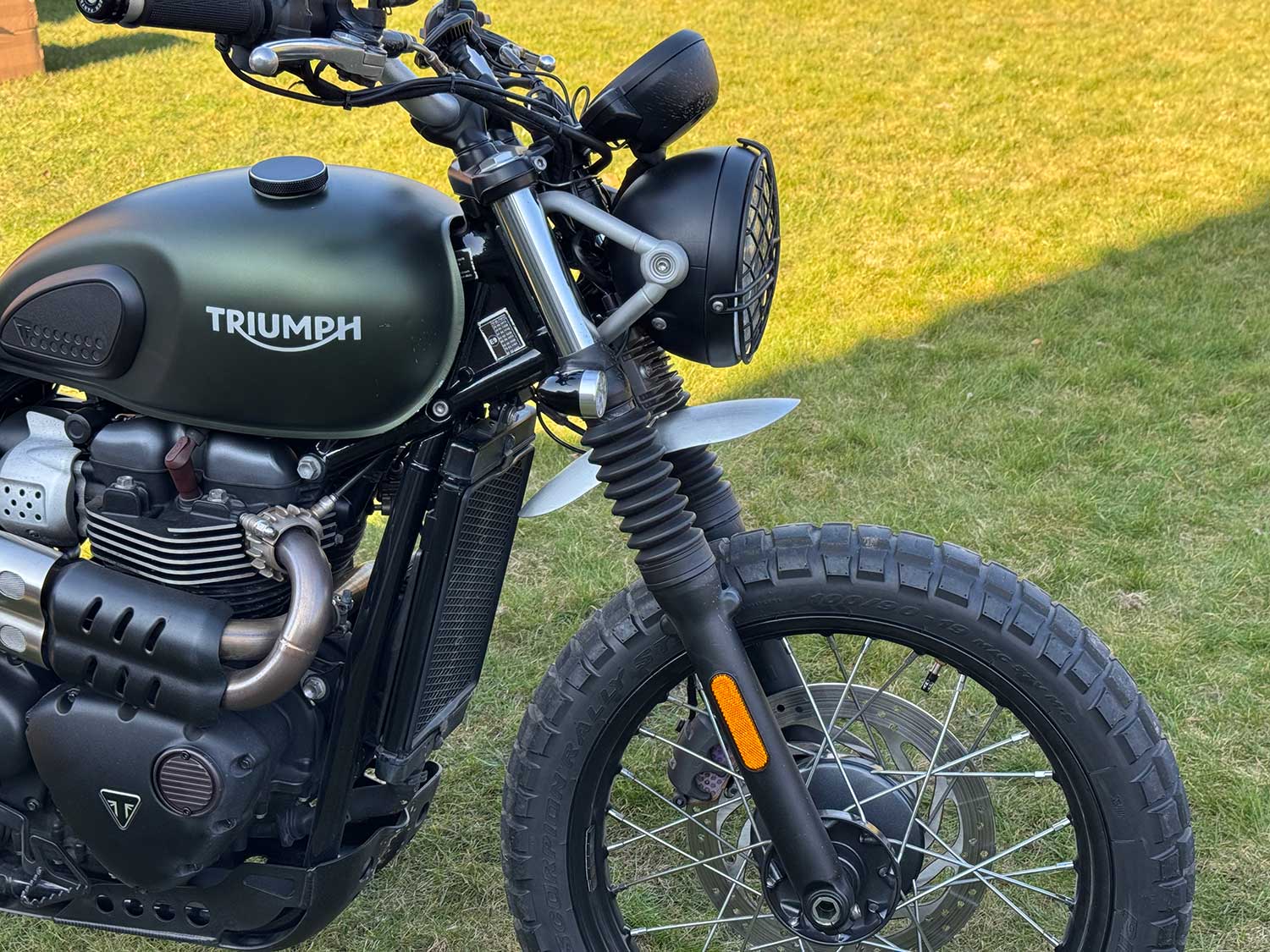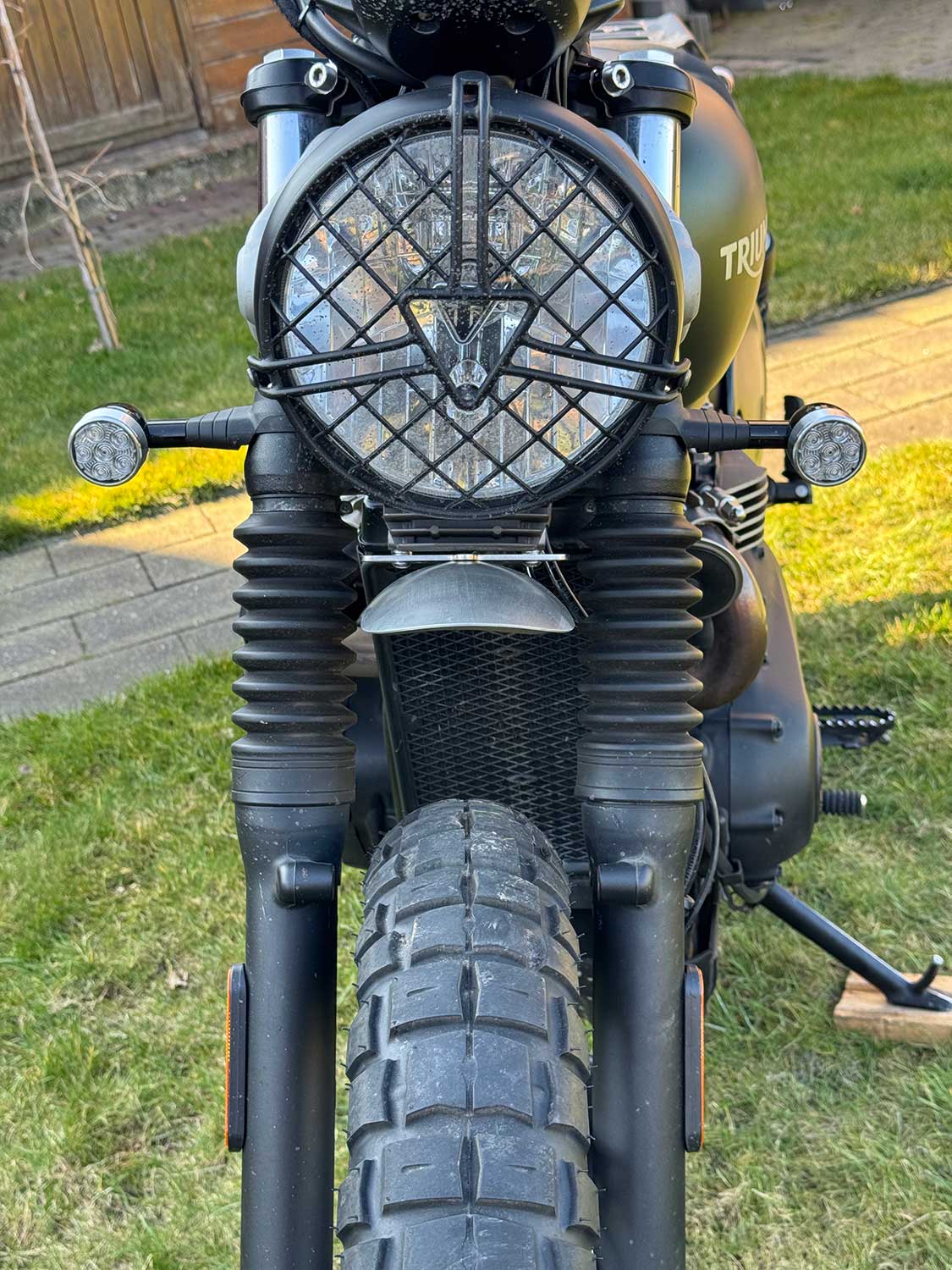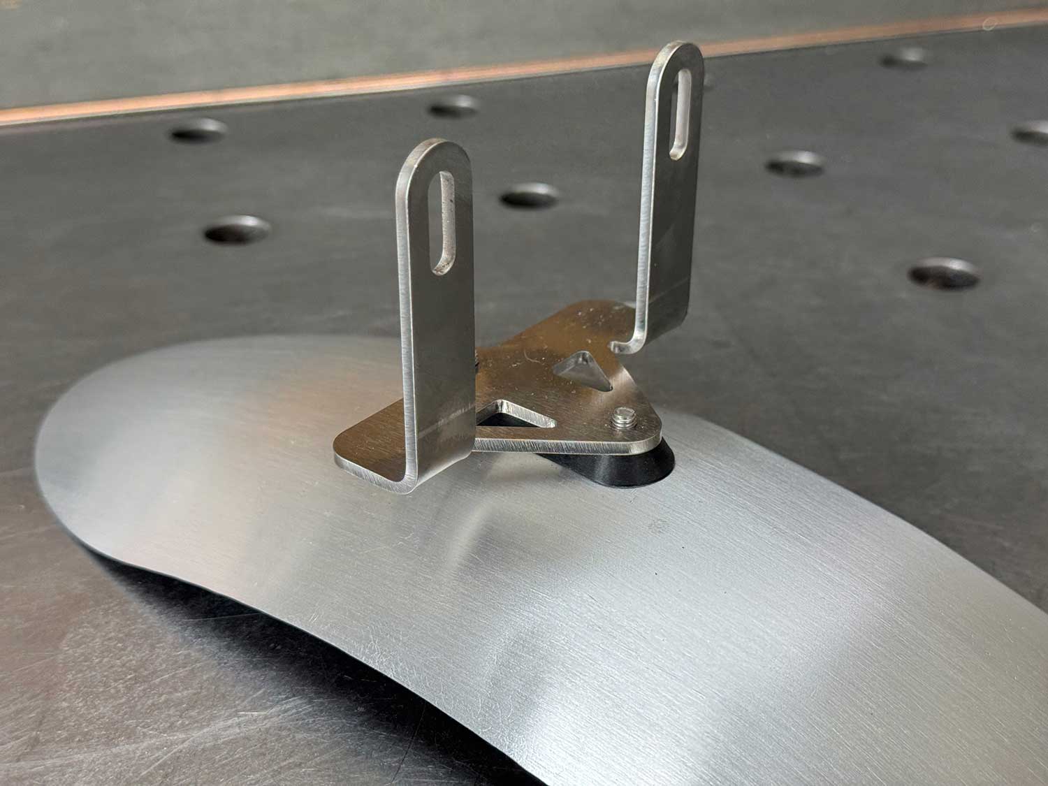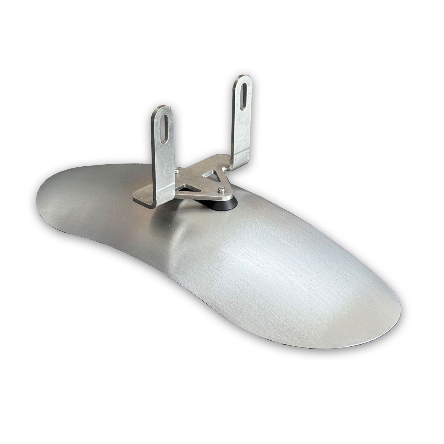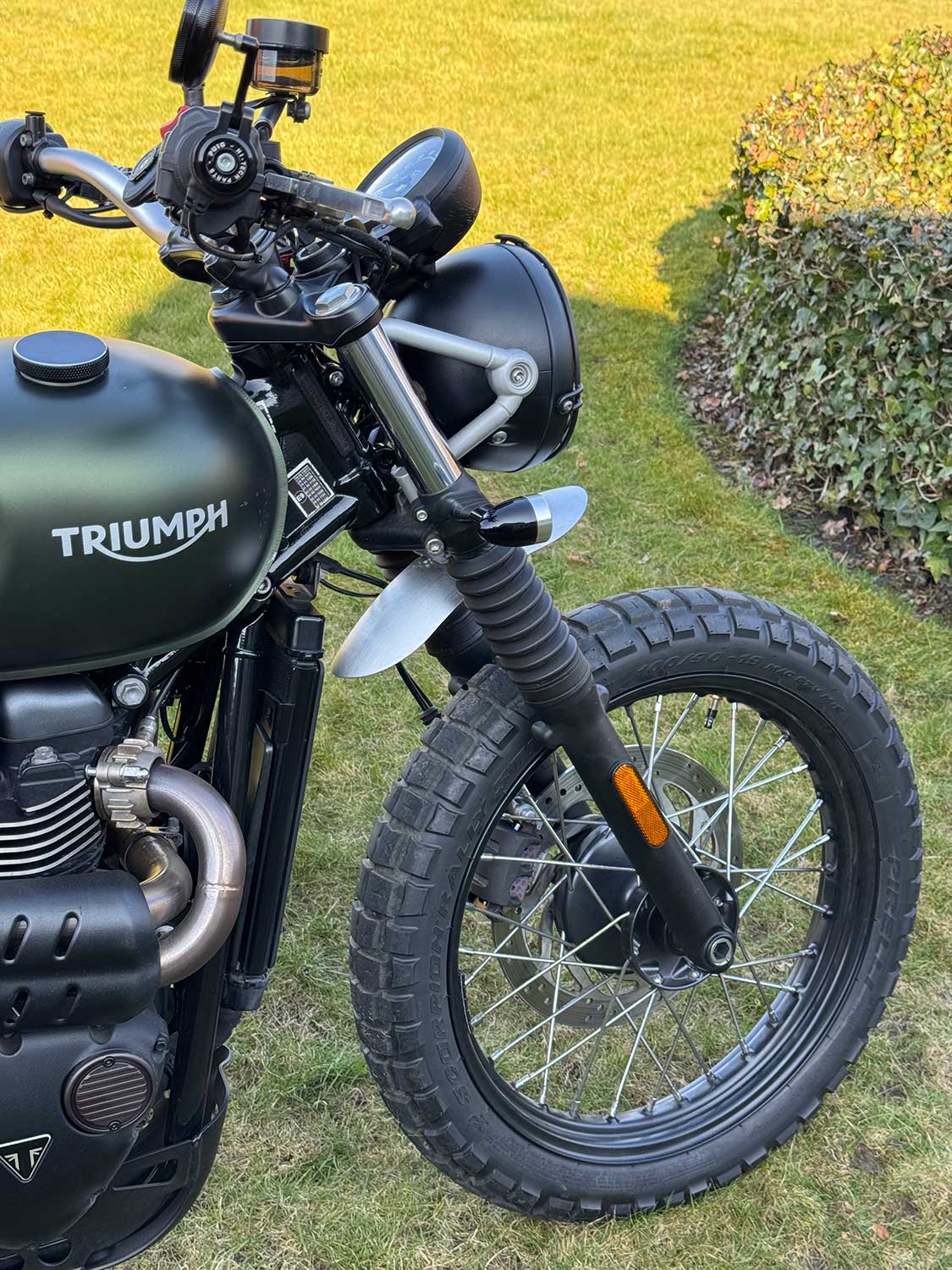 These beautifully finished high scrambler front fenders are specially made for the Triumph Bonneville T100, T120, Street- Cup/Twin/Scrambler and Thruxton. The brushed aluminium fenders are crafted with great pride. The brackets are made of 3mm stainless steel, and both the fender and brackets can be painted in color if desired. Because the brackets have a slotted hole, the fender is adjustable in height.