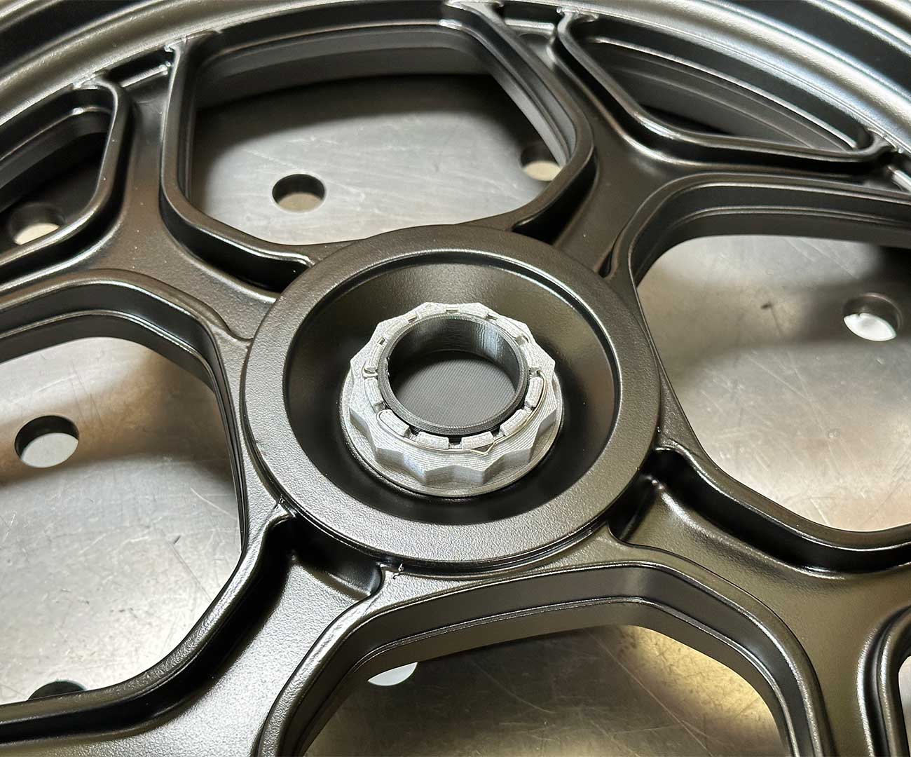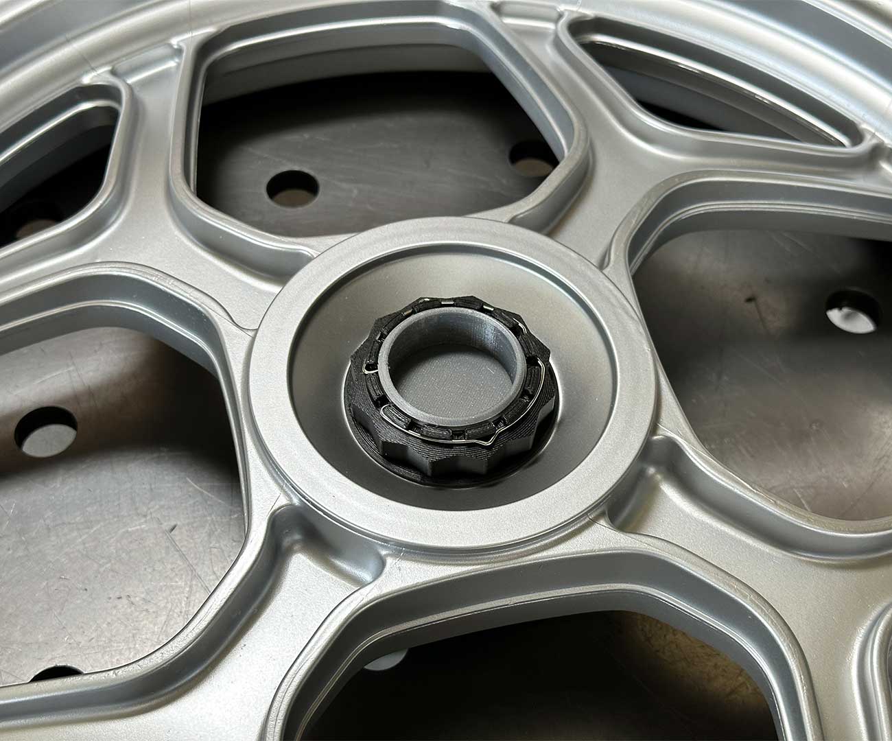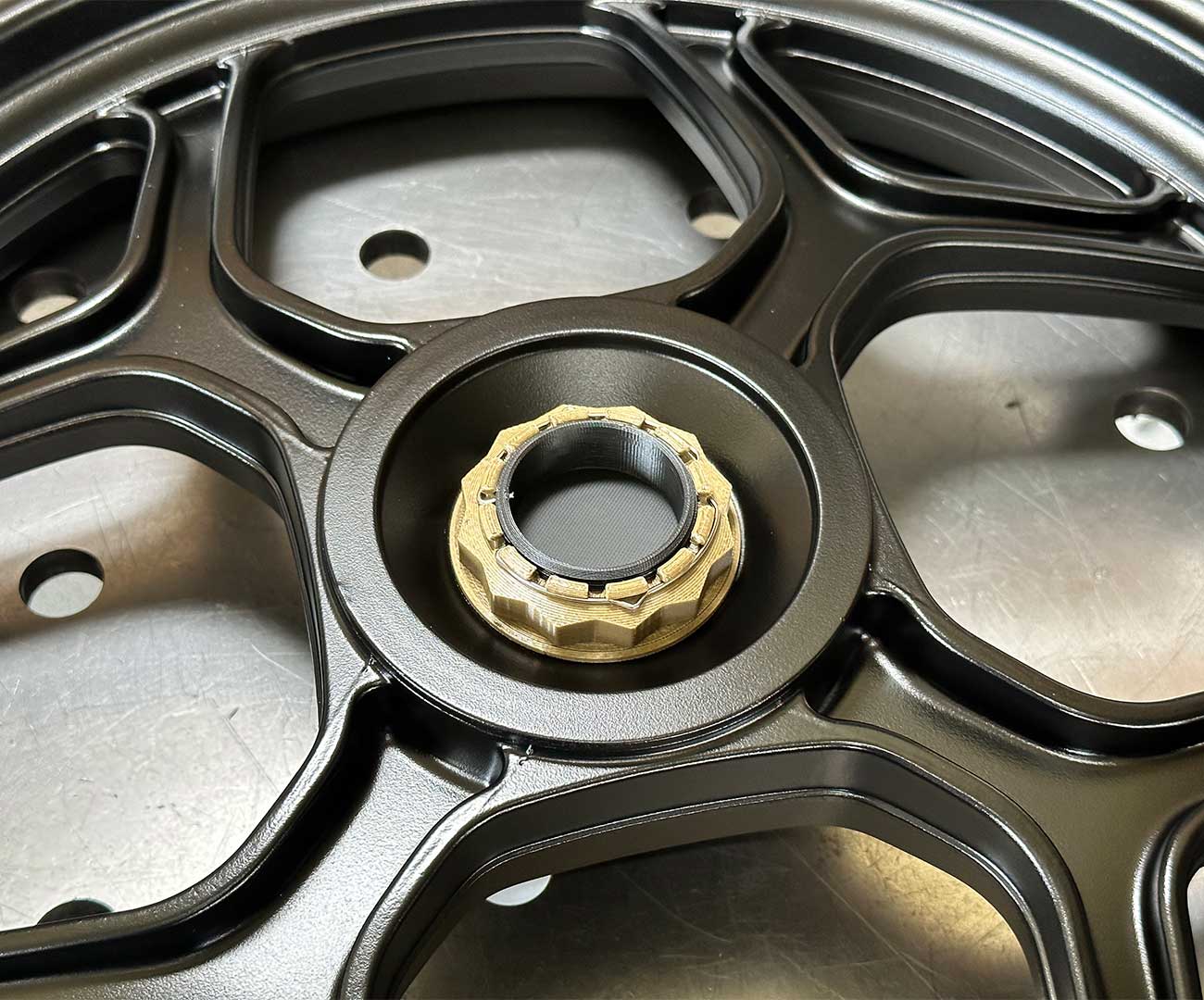 These decorative Centerlock nuts are specially made for the BMW K-series and are available in various colors. With a diameter of 64mm, they fit exactly in the hubcap of the BMW K75 and K100. Of course, they can also be mounted on the K1100 hubcaps.