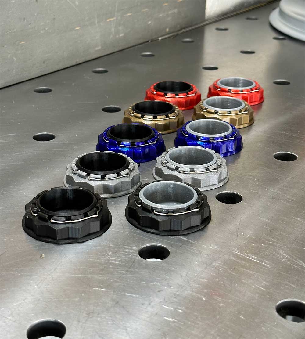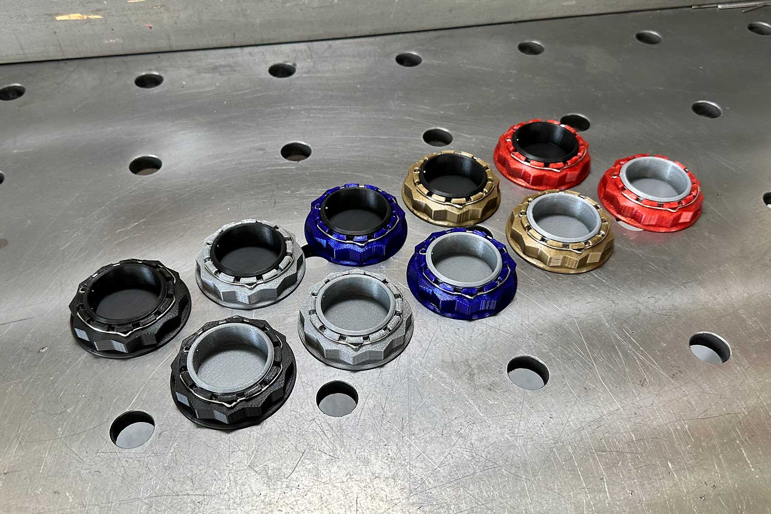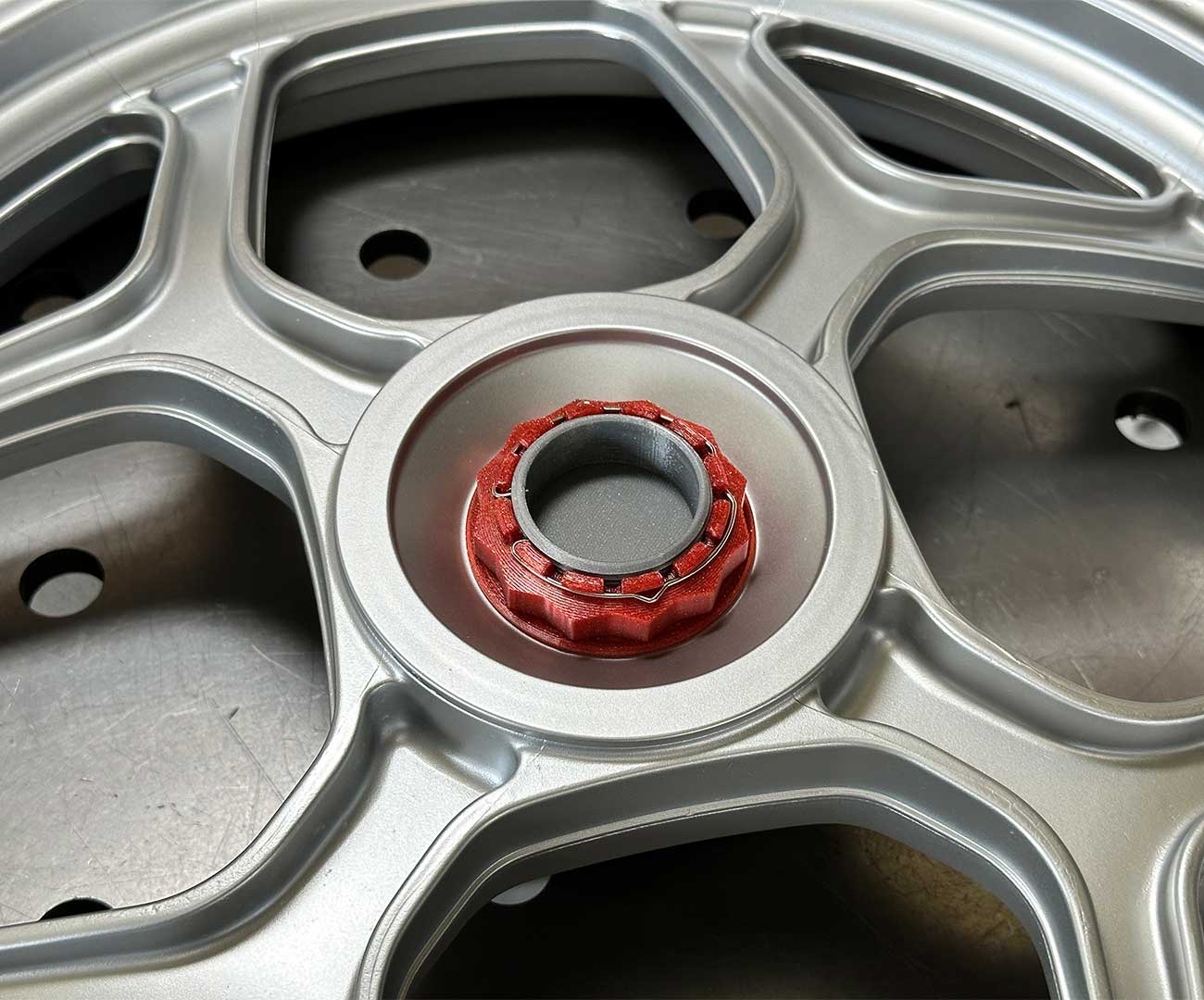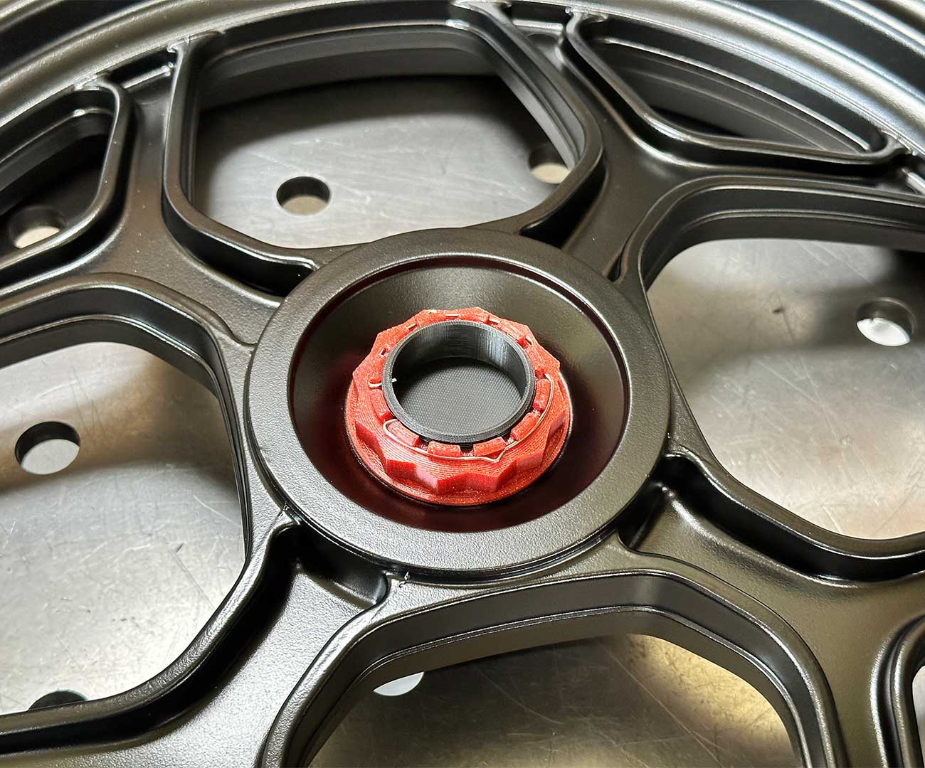 These decorative Centerlock nuts are specially made for the BMW K-series and are available in various colors. With a diameter of 64mm, they fit exactly in the hubcap of the BMW K75 and K100. Of course, they can also be mounted on the K1100 hubcaps.