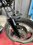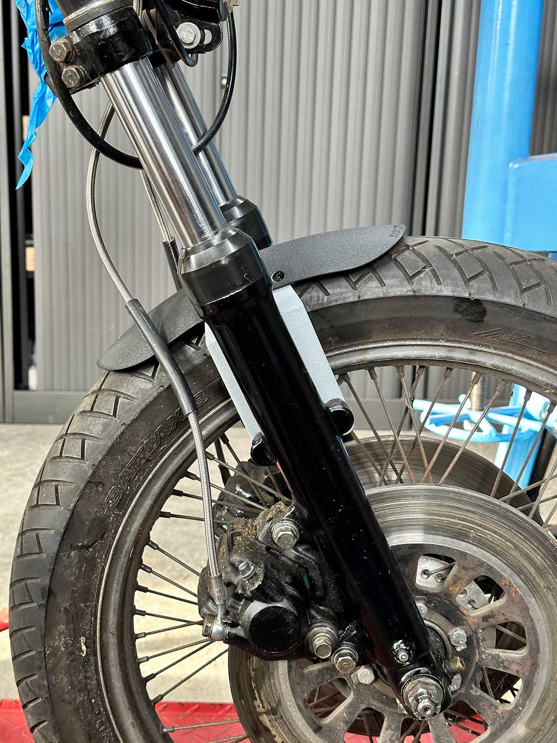 These beautifully finished front fenders are specially made for the Yamaha XS650 (all years). The brushed aluminium fenders are crafted with great pride. The brackets are made of 3mm stainless steel, and both the fender and brackets can be painted in color if desired. Because the brackets have a slotted hole, the fender is adjustable in height.