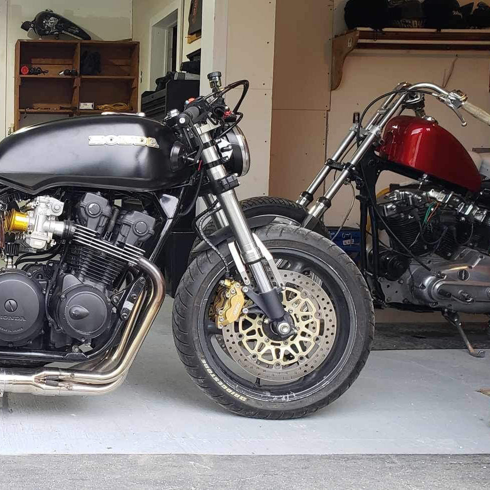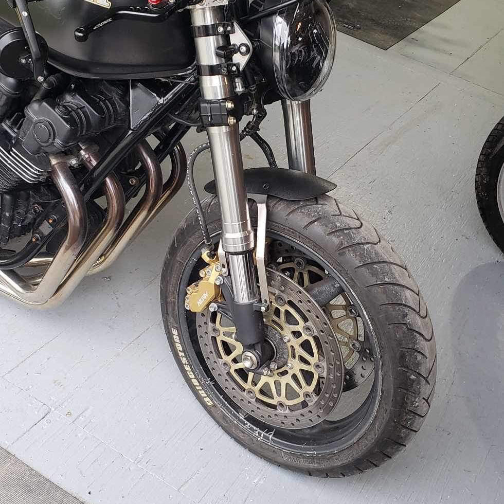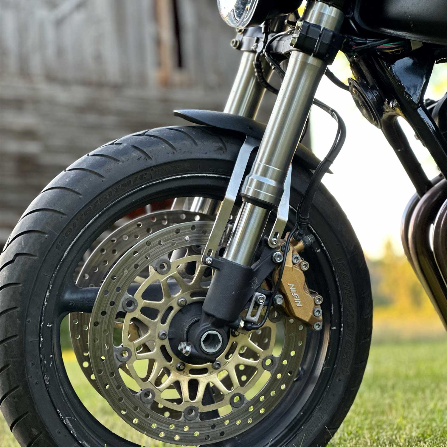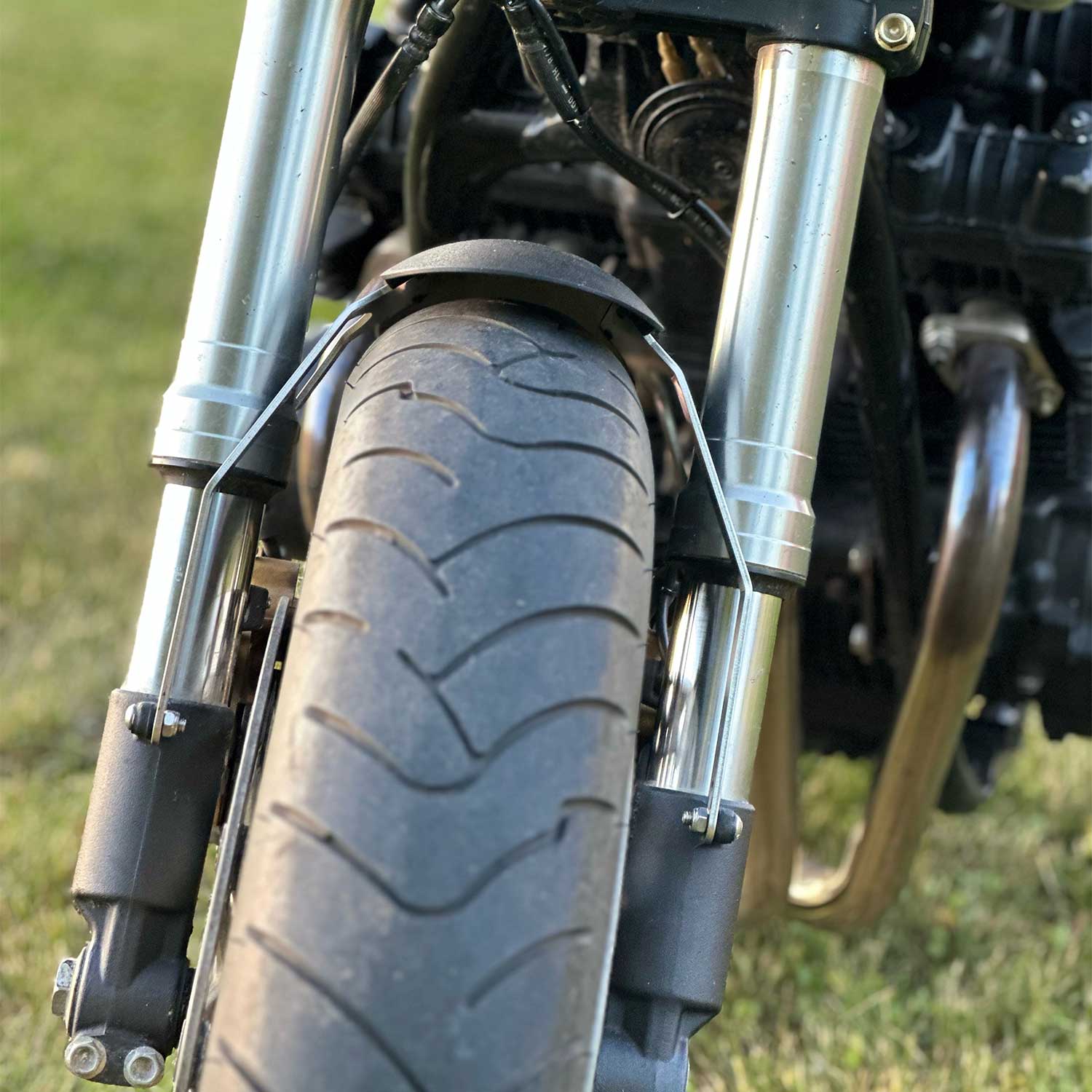 These beautifully finished front fenders are specially made for custom bikes with a Honda CBR900RR / VTR1000 fork conversions. The brushed aluminium fenders are crafted with great pride. The brackets are made of 3mm stainless steel, and both the fender and brackets can be painted in color if desired. Because the brackets have a slotted hole, the fender is adjustable in height.
